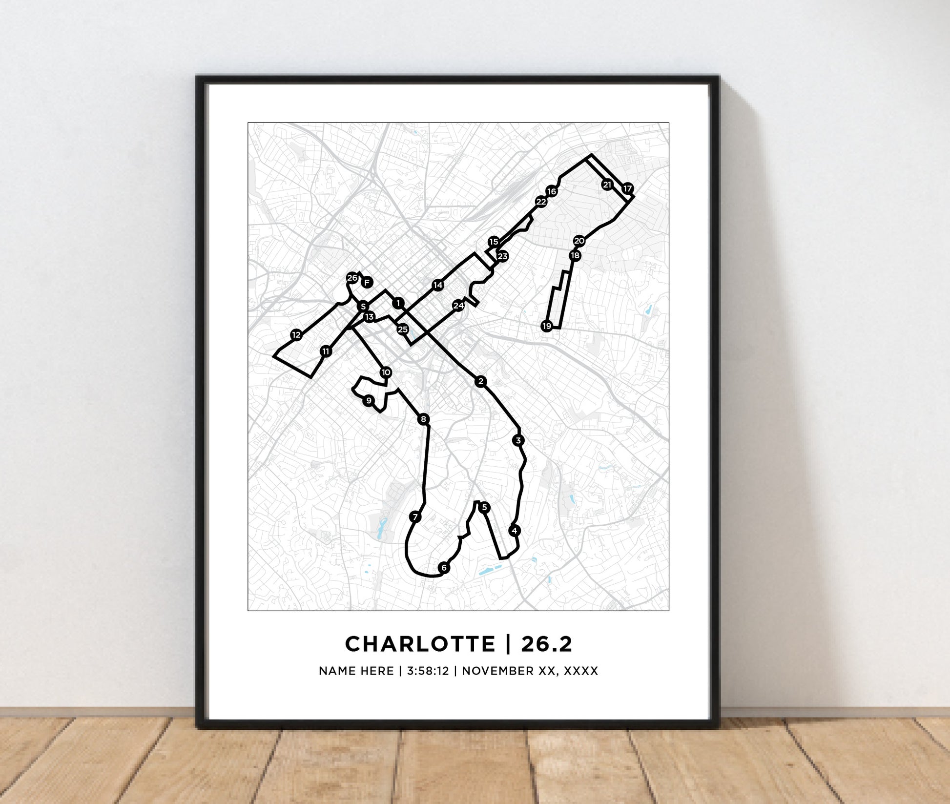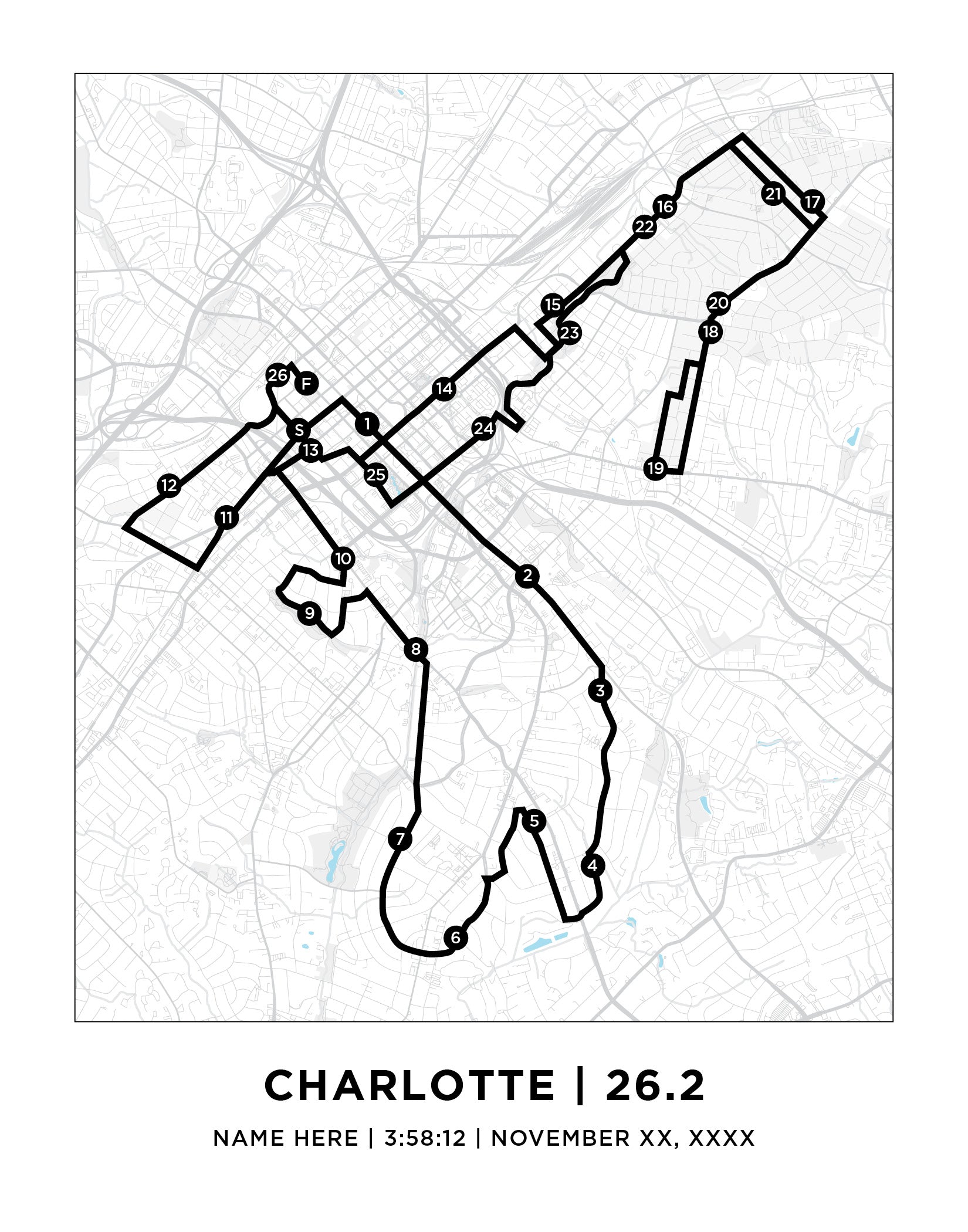 This map is available in 2 different sizes as well as the option to be personalized with your name, time, and date (bib number also can be included).