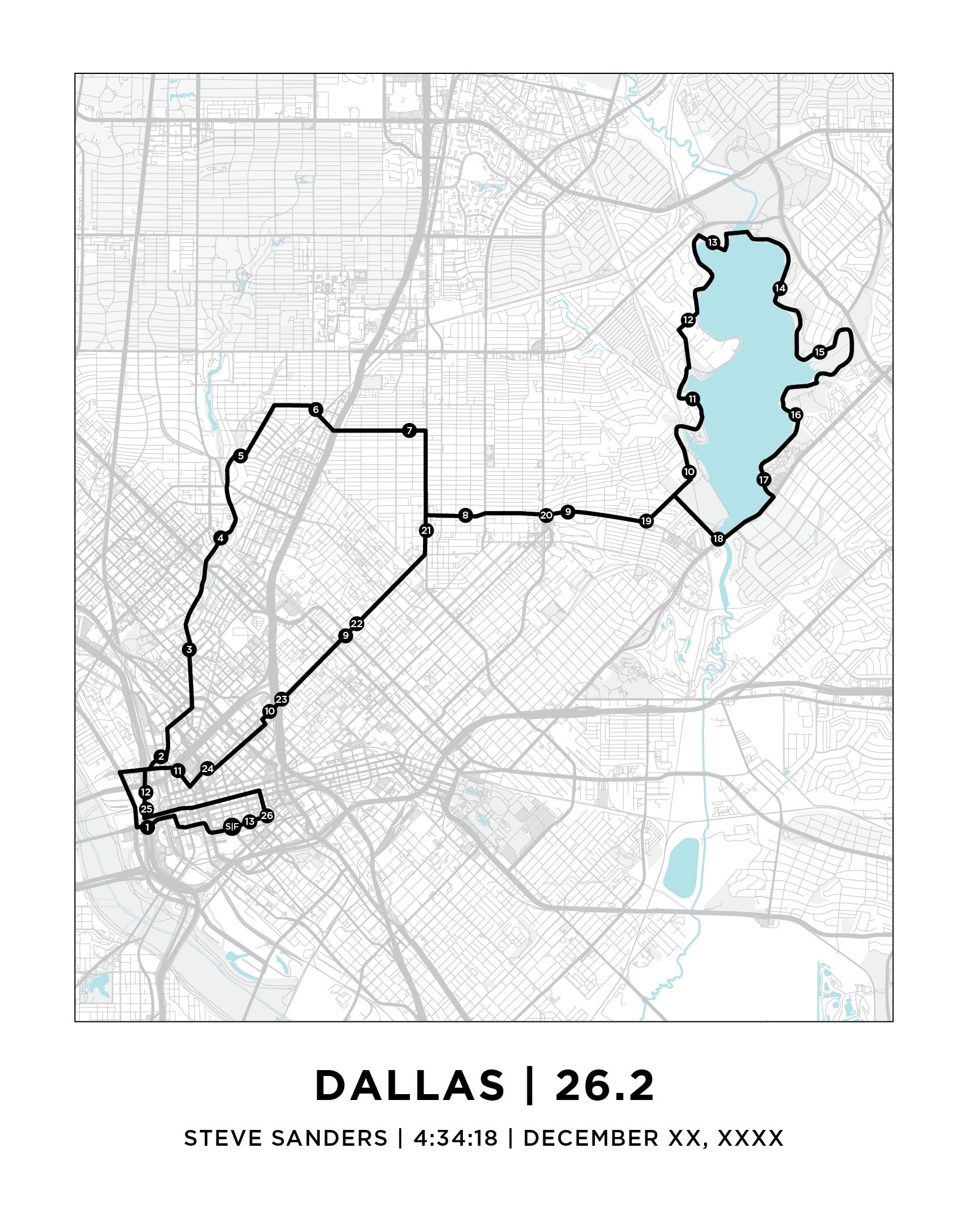 This map is available in 2 different sizes as well as the option to be personalized with your name, time, and date (bib number also can be included).